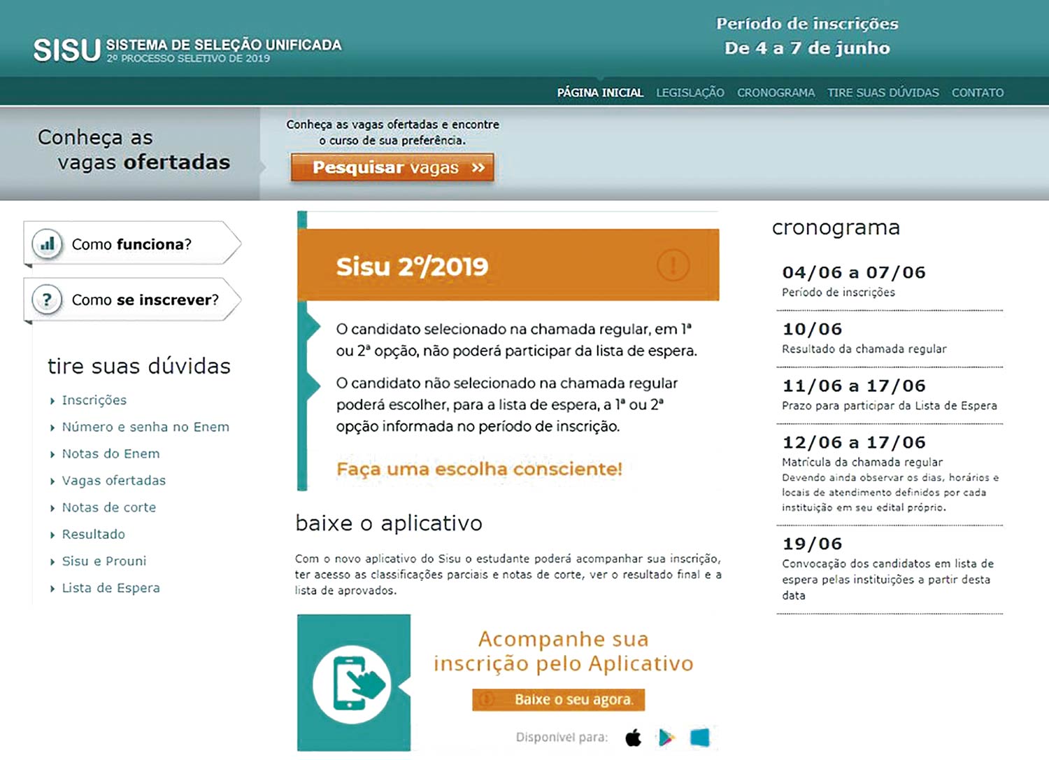 O Sistema de Seleção Unificada (Sisu) vai ofertar 59.028 vagas em 76 instituições públicas de ensino em todo o país no segundo semestre deste ano. As inscrições começam nesta terça-feira (4) e podem ser feitas até sexta-feira (7), na página do programa.