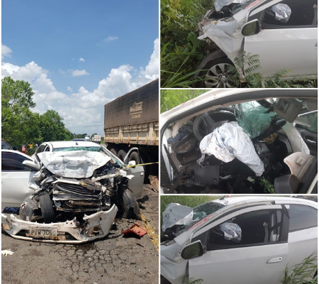 Um veículo GM Chevrolet Prisma 1.4LT, de cor branca e placa PIW-7055, de Teresina-PI, perdeu o controle, começou a "dançar" na pista e colidiu na frente da carreta Scania, de cor vermelha e placa PRO-0440, de Goiânia-GO.