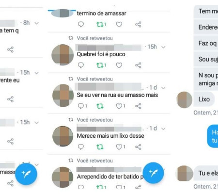 Após as agressões, o rapaz fez postagens nas redes sociais. "Eu só consegui me envolver no caso quando compartilhei todas as postagens dele e passei a expor o que ele estava fazendo". Depois disso, conforme relata, o garoto passou a ameaçá-la por mensagens e ligações, dizendo que ela pagaria pelo que fez.