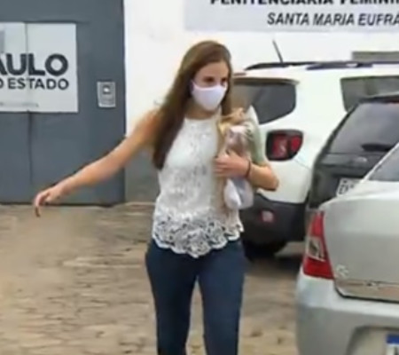 Assim como as outras detentas, Suzane usava máscara de proteção contra o coronavírus na saída da unidade. Ela se encontrou com uma mulher e chegou a correr para deixar o local.