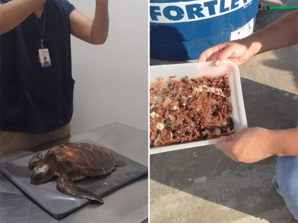 Segundo o ITD, foi confirmado o quadro de compactação na região do intestino e estômago por conta de uma grande quantidade de plástico, como embalagens de doces, canudo, sacola plástica, fragmento de cano PVC, fragmento de linha de pesca e linha de carretel (pipa), o que provocou complicações gastrointestinais na tartaruga.