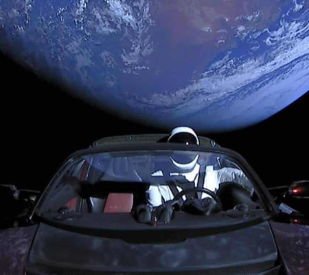 O veículo, que pertence ao CEO da Tesla e da SpaceX, Elon Musk, foi usado como uma carga de teste, no primeiro lançamento do foguete Falcon Heavy. A iniciativa visou ressaltar o potencial do ônibus espacial de transportar objetos para Marte. A operação, no entanto, não teve sucesso em posicionar o veículo na órbita do planeta.