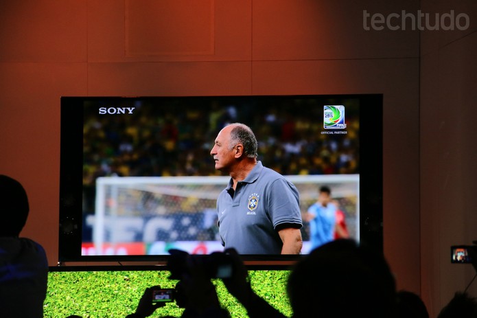 Uma TV da Samsung também tem este controle de ?flat screen? ou ?curved screen?. O produto ainda é um protótipo, mas foi revelado na CES 2014: com 85 polegadas, resolução 4K e esta opção de alternar o modo de visualização de imagem. O novo modelo flexível deve chegar ao mercado americano ainda esse ano.