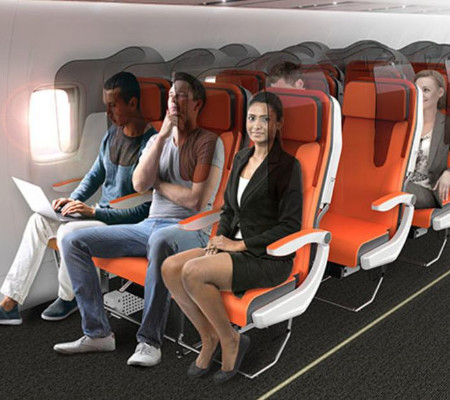 O segundo é o Janus Seat. Este é um pouco mais complexa e necessitaria uma reconfiguração dos aviões. O modelo imagina um assento que permita “três passageiros separados por um escudo feito de material transparente que os mantêm isolados um do outro, criando uma barreira protetora para todos”, como afirma a empresa no próprio site.
