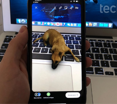 O filtro de cachorro do Instagram, conhecido como Sasha Dog, é um novo efeito do Stories que adiciona um cachorro vira-lata caramelo em fotos e vídeos. O efeito foi criado por Antonio Ruggiero (@antonio.ruggiero93) e usa realidade aumentada para simular o animal em 3D. É possível aumentar ou diminuir o tamanho do cachorro, e escolher o ponto em que ele aparece na imagem. De acordo com o Google Trends, monitor de buscas, houve um grande aumento no interesse pelo filtro Sasha Dog por usuários brasileiros do Instagram desde terça-feira (8). O efeito é usado para pregar peças em amigos, por aparentar ser um cachorro de verdade. A notícia é do site Tech Tudo.