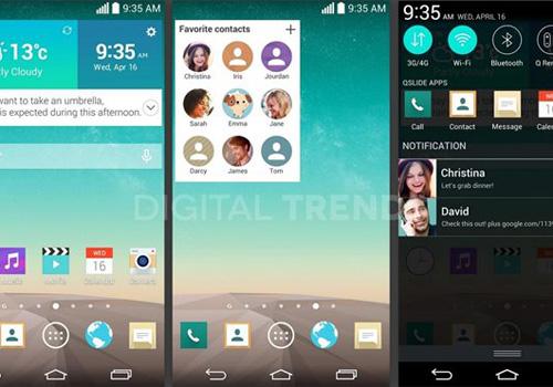 Para começar, o futuro celular inteligente vai apresentar uma interface de usuário completamente nova. Em comparação com a que foi utilizada no LG G2, há um uso maior de elementos chapados, ícones mais brilhantes e até mesmo um sistema de notificações diferente, com uso de formatos circulares.