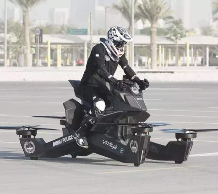 O modelo, chamado de Scorpion 3, foi anunciado em 2017 e tinha como objetivo ser usado pela polícia da cidade dos Emirados Árabes. A criação utiliza quatro hélices – dispostas de maneira semelhante a um drone – que conseguem levar o piloto ao céu.