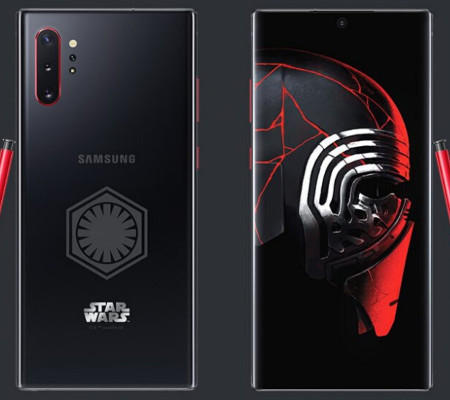 A Samsung elaborou uma edição especial do Galaxy Note 10 Plus também aludindo para o lado sombrio da Força. O smartphone vem com a traseira contendo a marca da saga, detalhes em vermelho, papel de parede do Kylo Ren e a S Pen simula o sabre de luz vermelho. O kit ainda vem em uma embalagem temática com caixas colecionáveis e fones personalizados.