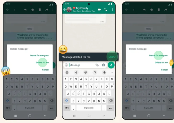 - Após tocar em "Apagar para mim" sem querer, toque em "Desfazer";
