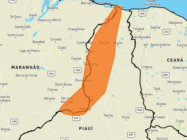 Há risco de corte de energia elétrica, queda de galhos de árvores, alagamentos e de descargas elétricas. O alerta vai até às 10h de quinta-feira (19). Além da capital piauiense, outras 71 cidades situadas no centro-norte, norte e sudoeste do estado também estão em alerta para chuvas fortes. (Veja a lista abaixo).