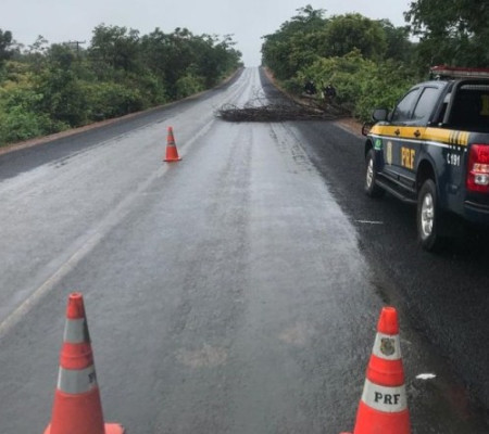 A Polícia Rodoviária Federal (PRF) realizou a desobstrução de um trecho da rodovia BR 343 no município de Floriano, nesta quarta-feira (25), quando ao realizarem trabalho de policiamento ostensivo, se depararam com algumas árvores que interditaram metade da pista de rolamento.