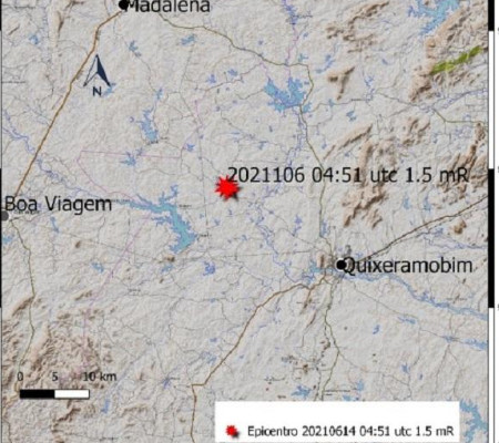 Um tremor de terra foi sentido pelos moradores da cidade de Quixeramobim, a 203 quilômetros de Fortaleza, no Ceará, na madrugada desta segunda-feira (14). Diversas pessoas escutaram um forte estrondo por volta de 1h50.