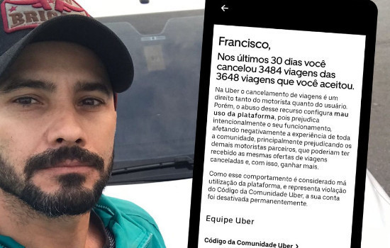 Souza diz ainda que foi procurado por quase 1 mil motoristas retirados da plataforma. Ao retirar um motorista da plataforma, a Uber envia uma mensagem dentro da plataforma e restringe o acesso para novas corridas. Alegando violação do Código da Comunidade Uber, a conta é “desativada permanentemente”.
