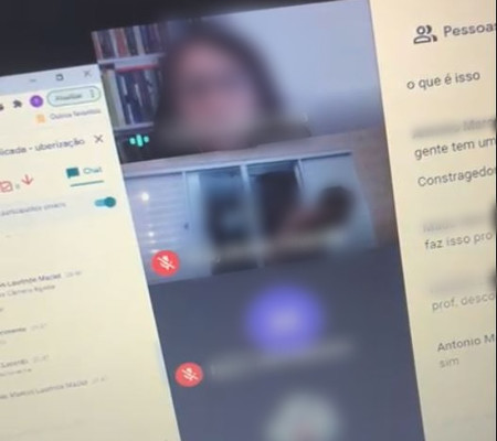 "Não sei o que eu faço numa situação dessas. A única câmera ligada eu acho que é a câmera que não deveria estar ligada. É constrangedor, evidentemente. A gente está gravando, inclusive", afirmou a professora. Em seguida, todos desconectaram, e a professora e os demais alunos recomeçaram em outra sala virtual.