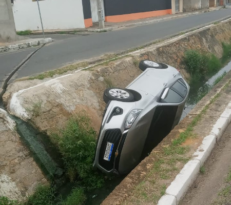 Veículo cai na galeria do Mocambinho após tentar desviar de moto