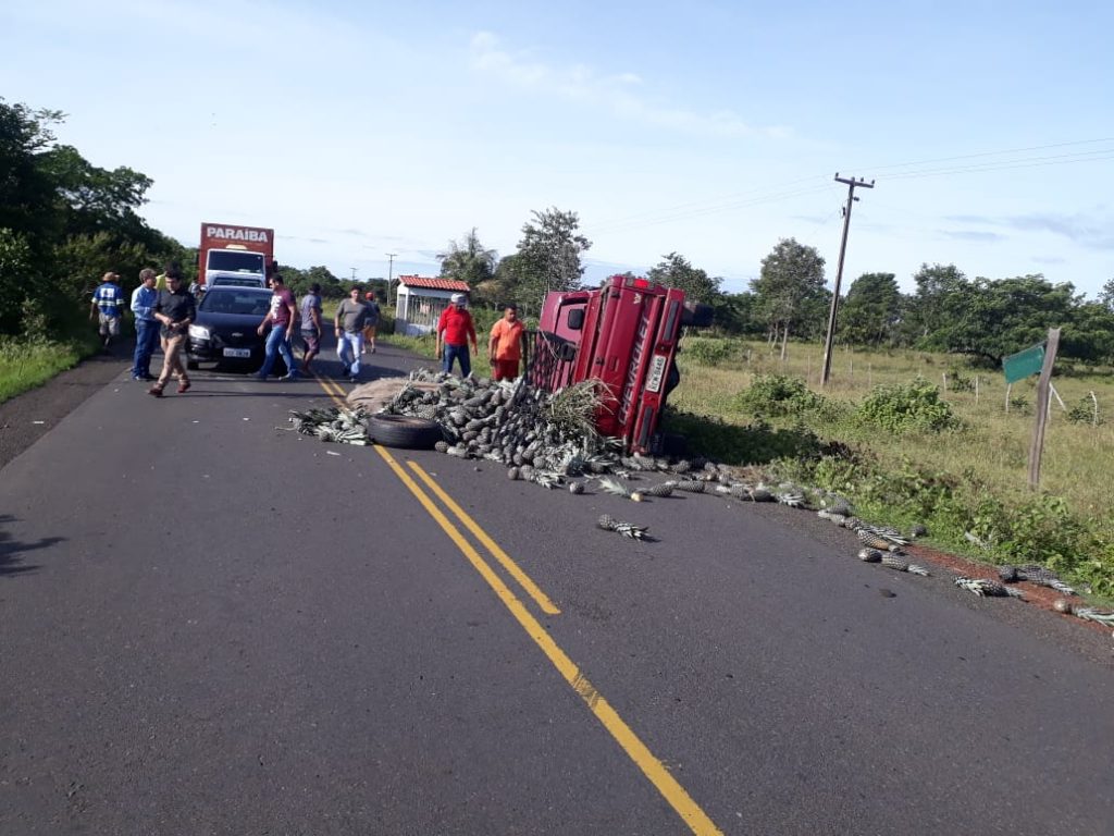 Uma caminhonete carregada de abacaxis tombou na manhã desta quarta-feira (20/03) após se envolver em um acidente com outros dois veículos na rodovia PI-113, entre os municípios de Cabeceiras do Piauí e Barras, na região Norte do Estado.