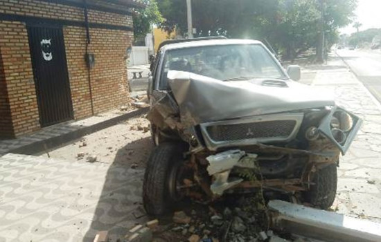 Uma picape ficou com a dianteira destruída ao colidir contra a estrutura de uma churrascaria, na manhã desta segunda-feira (27), na Avenida São Sebastião, em Parnaíba, litoral do Piauí.