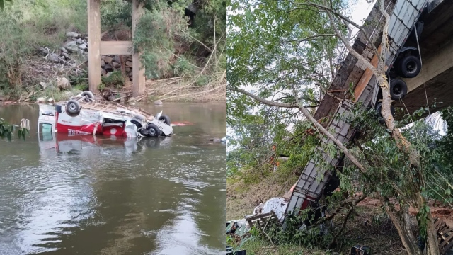 Nas imagens é possível ver que as viaturas ficaram submersas no rio. A carreta do primeiro acidente ficou pendurada na ponte, enquanto a envolvida no segundo não saiu da pista. Neste segundo, havia duas pessoas. Não há informações sobre o estado de saúde delas.