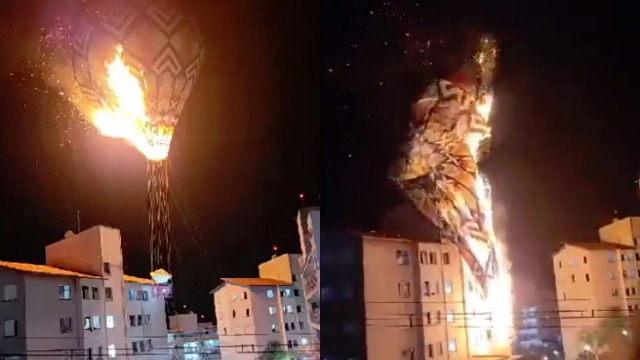 Toda a cena foi registrada por vídeos gravados por testemunhas. Nas imagens, é possível ver o momento que o balão desce já tomado pelas chamas e caindo sobre um dos prédios do condomínio.