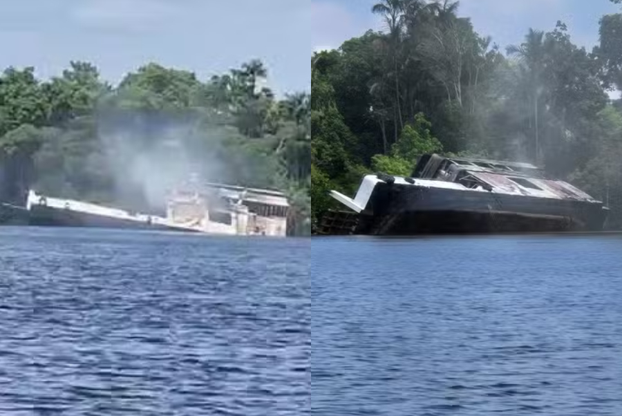 Na manhã deste sábado (27), um vídeo registrou o momento em que o barco Comandante Souza começou a afundar no Rio Negro, após um incêndio que deixou mortos, feridos e desaparecidos. O incidente ocorreu próximo à Comunidade Santa Maria, no Amazonas. As chamas se alastraram rapidamente, forçando vários passageiros a pularem na água para se salvar.