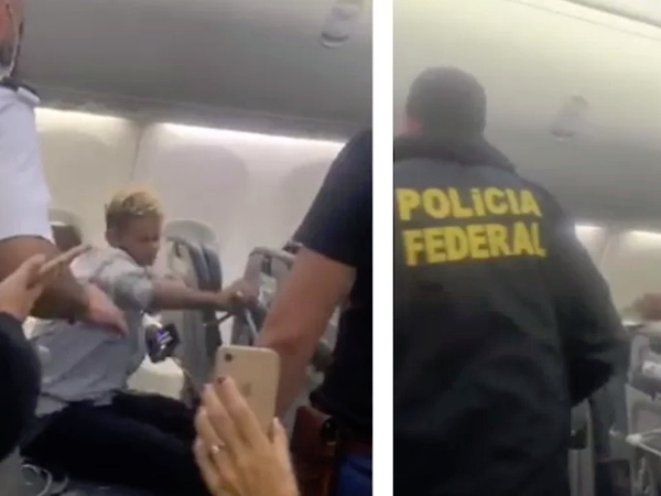 Nas imagens, é possível ver que já não havia nenhum outro passageiro sentado ao seu lado quando a confusão começa. Visivelmente alterado, ela passa a chutar com força as poltronas e o equipamento dobrável usado para refeições. Em um segundo trecho, o homem começa a gritar com um policial federal, identificado com o colete da corporação. "Vagabundo", grita uma passageira, incomodada com a situação. "Abaixa essa bola, a polícia chegou", começou a berrar o policial, na tentativa de fazer com que o homem parasse de gritar.
