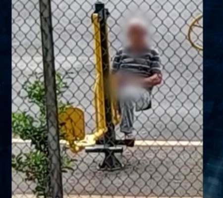 Nas imagens, o idoso está em um dos equipamentos de exercício, olhando as crianças que estão brincando no local, enquanto toca nas partes intimas. Ao menos três pessoas gravaram a cena, que foi denunciada à delegacia local e registrada como crime contra a dignidade sexual. O caso ocorreu na tarde de quarta-feira (13) e será investigado pelo Distrito Policial da cidade.