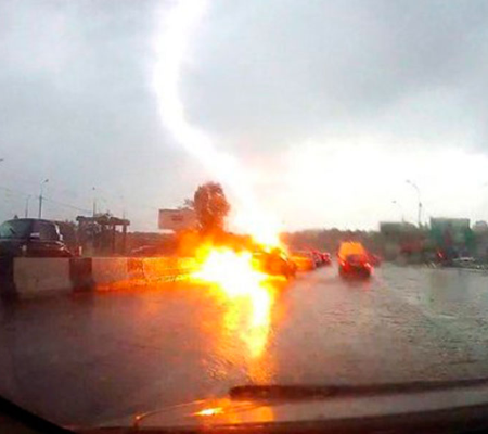 Imagens impressionantes do momento em que um carro é atingido por dois raios em uma via de Novosibirsk, na Rússia, foram divulgadas nas redes sociais no último final de semana e ganharam grande repercussão nas redes sociais.