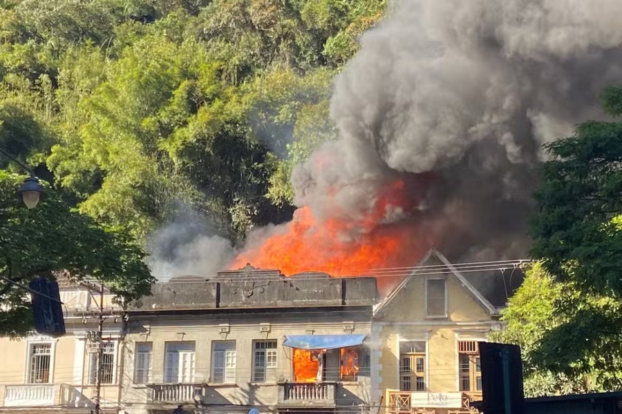 Um incêndio devastou uma loja situada em um casarão histórico no centro de Petrópolis, na Região Serrana do Rio de Janeiro, nesta sexta-feira (14). Até o momento, não há relatos de vítimas ou feridos.