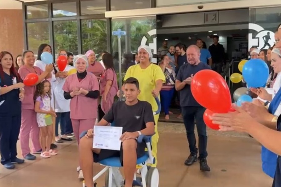 Vitor Hugo foi atacado por um enxame ao buscar uma bola ao lado do Centro de Ensino Fundamental (CEF) Queima Lençol, no dia 14 de fevereiro. A vítima sobreviveu graças ao atendimento de emergência que recebeu na Unidade Básica de Saúde (UBS) 3 da Ferca, onde ficou internado na unidade de terapia intensiva (UTI) do Home. Veja abaixo o vídeo do momento da alta: