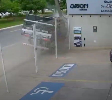 Imagens de câmeras de segurança de um estabelecimento próximo ao local gravaram todo o ocorrido. O caminhão aparece nas imagens em alta velocidade, passando na frente de um veículo e vai em direção ao poste.
