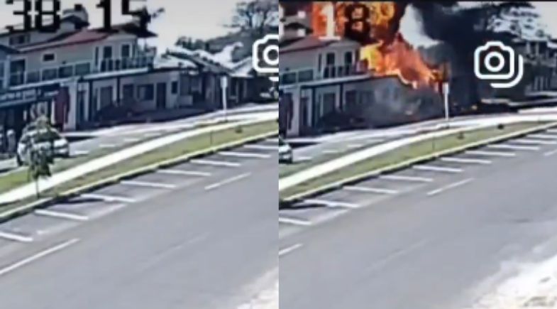 No vídeo é possível ver que o avião cai e logo em seguida pega fogo. Veja: