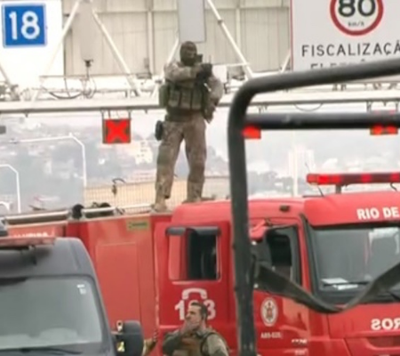 O homem responsável pelo sequestro do ônibus 2520 na ponte Rio-Niterói nesta terça-feira (20/08) está usando a mesma máscara que Guilherme Taucci Monteiro usou durante o atentado em uma escola estadual de Suzano, no dia 13 de março. Guilherme usou uma bandana com uma caveira para cobrir o nariz e a boca durante o ataque.