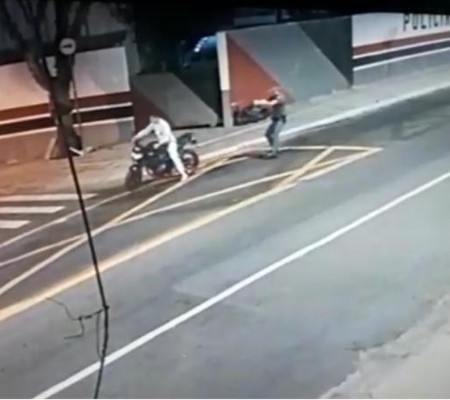 Imagens da câmera de um comércio exibem uma moto passando em alta velocidade e, poucos segundos depois, a mesma moto aparece no outro sentido da via. Na segunda passagem, o motociclista se desequilibra e surge um policial militar fardado com a arma em punho, que persegue a moto a pé e efetua dois disparos. O primeiro tiro acontece quando a moto já estava parada e o homem estava de costas para o policial, descendo do veículo.
