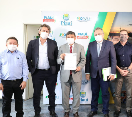O governador Wellington Dias assinou, nesta quinta-feira (26), uma ordem de serviço no valor de R$ 5,3 milhões para a construção de mais 20 leitos de Unidade de Terapia Intensiva (UTIs) e mais quatro obras que darão suporte à implantação do serviço de cirurgia cardíaca no Hospital Getúlio Vargas (HGV), ampliando a oferta de serviços de alta complexidade à população do Piauí. Participaram da assinatura, o secretário de Saúde Florentino Neto; o diretor-geral do HGV, Gilberto Albuquerque e o presidente da Fundação Piauiense de Serviços Hospitalares (Fepiserh), Pablo Santos.