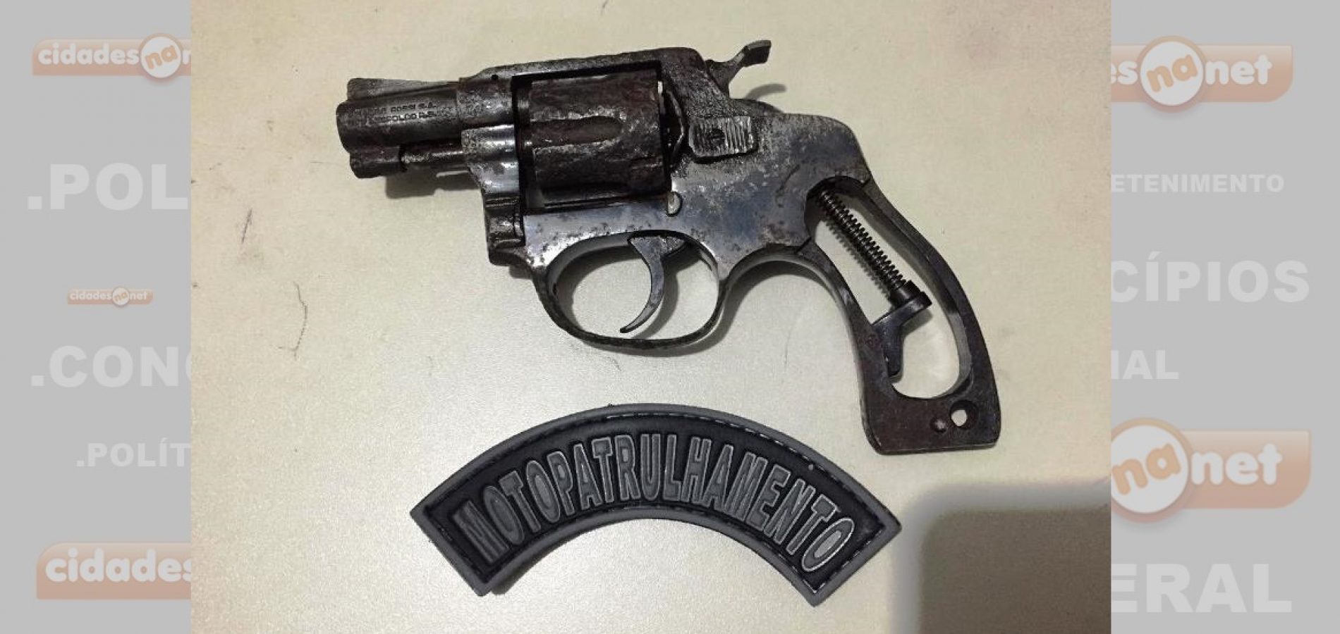 A arma é da marca Rossi, modelo C196, e se encontrava sem o cabo da coronha e possuía um tambor de seis munições.