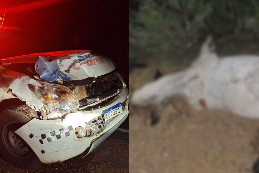 Uma viatura do 4° Batalhão da Polícia Militar colidiu com uma vaca na noite desta segunda-feira (21), na PI que dá acesso ao município de Alagoinha do Piauí, no Sul do estado. O veículo não conseguiu desviar do animal devido à visão do condutor ter sido ofuscada por outro veículo que seguia em sentido contrário.