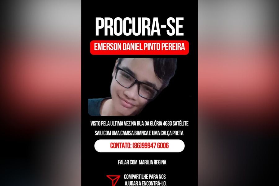 A família já registrou um boletim de ocorrência. Para qualquer informação acerca do adolescente, entrar em contato: (86) 99947-6006.