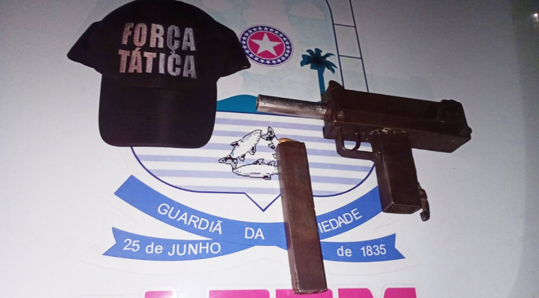 Segundo informações da PM, durante patrulhamento de rotina, a equipe da Força Tática avistou quatro indivíduos em atitude suspeita. Durante a abordagem e busca pessoal, os policiais encontraram com J. F. L., menor de idade, uma arma de fabricação caseira do tipo submetralhadora, um carregador e uma munição calibre .40.
