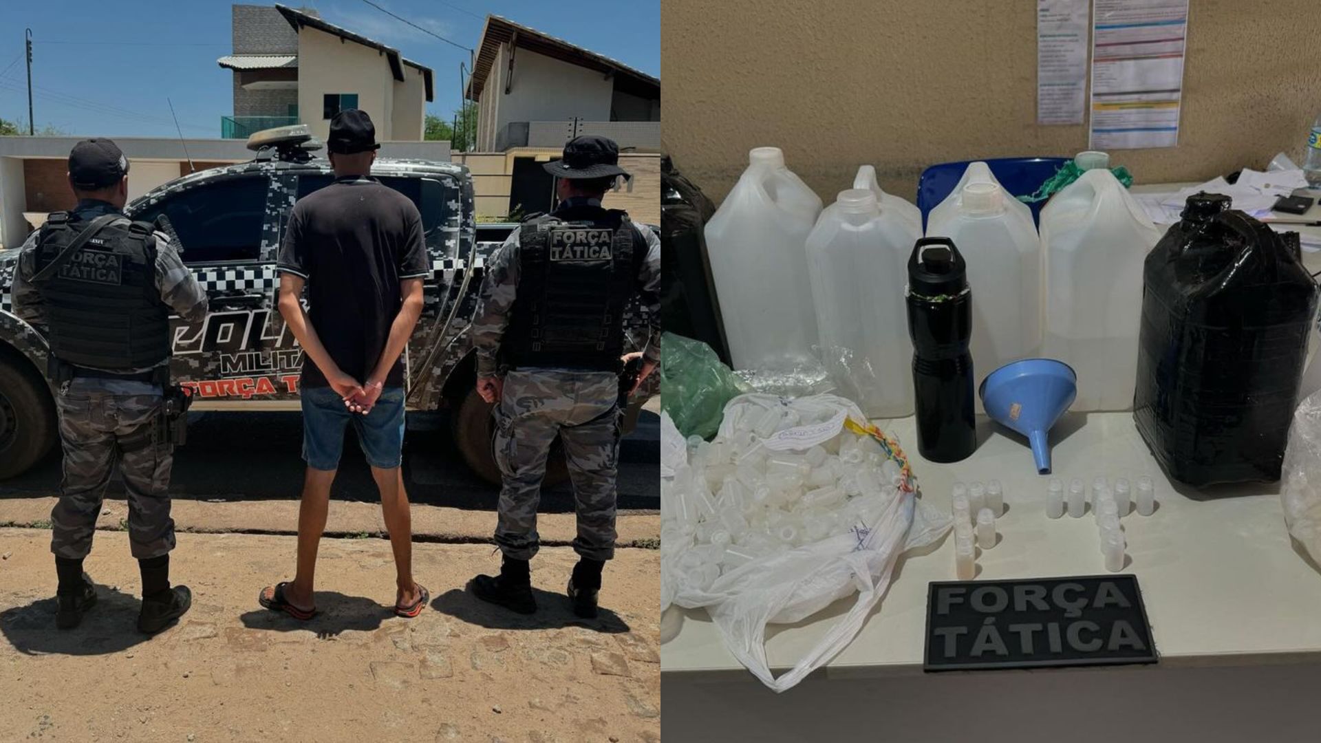 “Nesse momento, foi encontrado no cômodo grande quantidade de material análogo a lança perfume(lolo), material já preparado para comércio, material acondicionado em armazenamento e material para preparação/fabricação da substância entorpecente”, explicou o 4° BPM por meio de uma nota.