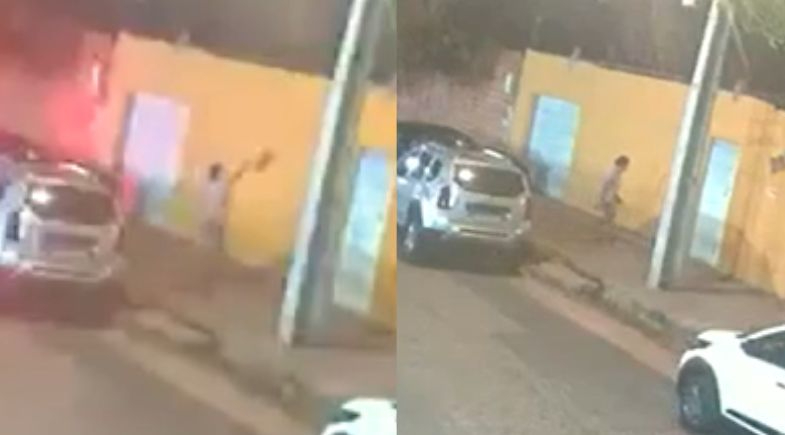 As imagens mostram que, além de arremessar o animal, a suspeita também tentou arrebentar o portão da residência e danificou um veículo estacionado em frente ao imóvel.