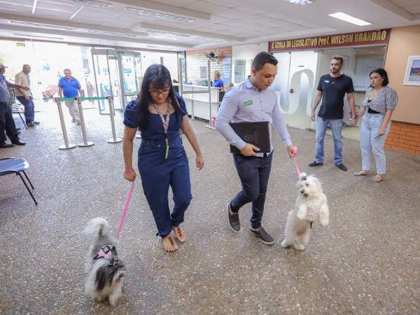 Nesta quinta-feira (13), a estudante de medicina veterinária Uanda Mirella, juntamente com seus pets Sol e Amora, tiveram uma experiência única em suas vidas. Elas adentraram na Assembleia Legislativa do Piauí (Alepi) juntas pela primeira vez para mediar uma roda de conversa.