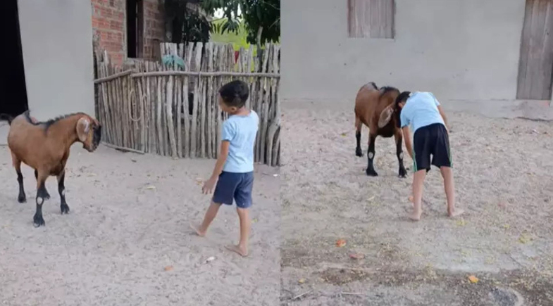 No interior do Piauí, na cidade de Esperantina, João Feliphe, de 7 anos, e o bode Théo, de 2, chamam atenção nas redes sociais pela amizade incomum. O animal foi levado para a casa da família logo após o desmame e acabou se tornando um verdadeiro “pet”.