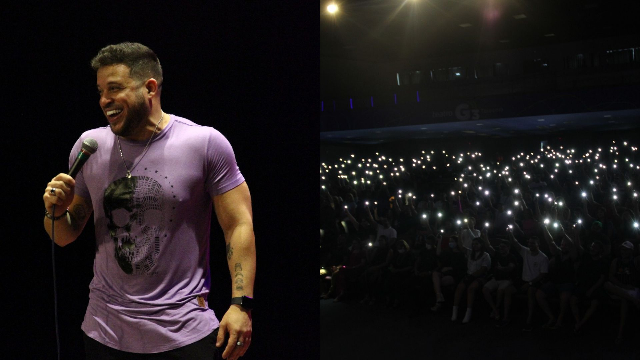 “Olha, são vivências múltiplas. Tem vivência minha, do tempo de escola, de amigo. Tem uma parte no show que eu falo sobre um churrasco de família na casa da avó, que reúne toda a família e é totalmente baseado na minha família. É o que eu vivi, é o que eu cresci fazendo. Então eu tento transmitir um pouquinho do que eu vivi, do que eu fui, junto das piadas, pra que a galera sinta como foi o mesmo que eu vivi aquilo ali”, afirmou o humorista.