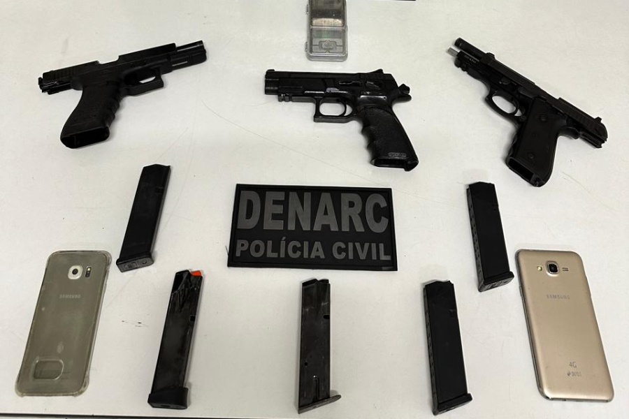 Acabamos de retirar mais três armas de fogo, mais três pistolas, uma Glock, uma PT-100, uma arma, uma outra pistola de origem israelense que servia a criminalidade, por meio do Bonde dos 40, e que agora serão naturalmente apreendidas e todo o proceder de investigação vai resultar na prisão dos envolvidos, disse o delegado Samuel Silveira, coordenador do DENARC.