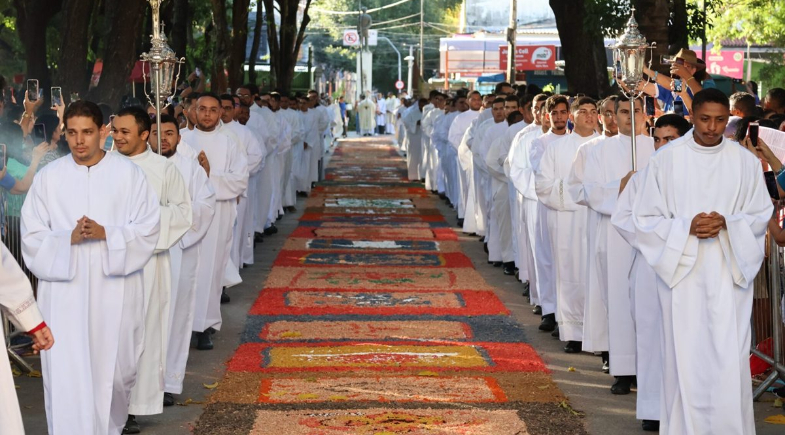 Na quinta-feira (19/06) a Arquidiocese de Teresina se prepara para celebrar a Solenidade de Corpus Christi, uma das festividades mais importantes do calendário litúrgico católico. O momento destaca a presença real de Jesus Cristo na Eucaristia. O momento contará com uma programação especial, que inclui a tradicional confecção de tapetes, missa solene e procissão pelas ruas do centro da capital.