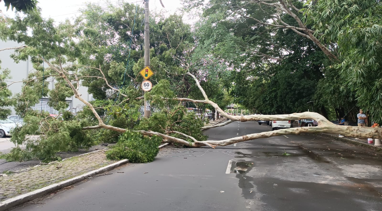 Até por volta das 12h30, a árvore ainda permanecia na pista e não havia equipes de órgãos competentes no local para realizar a retirada. A situação continuava impactando o fluxo de veículos, gerando transtornos para quem passava pela avenida.