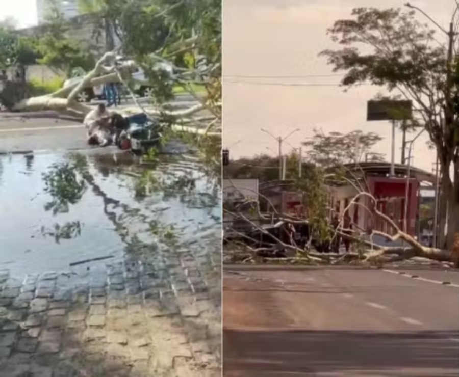 Na tarde desta segunda-feira (30), um motociclista de aplicativo e sua passageira ficaram feridos após serem atingidos pela queda de uma árvore na Avenida Presidente Kennedy, na Zona Leste de Teresina. Segundo informações da Guarda Civil Municipal (GCM), o condutor sofreu um ferimento na cabeça e perdeu a consciência no local.