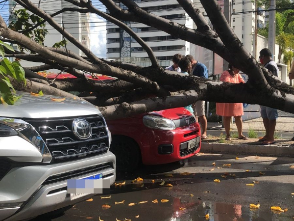 O relato e as imagens foram repassados por um leitor do Meionorte.com, que contou que no momento em que os dois carros passavam pelo local, a árvore acabou caindo por cima dos veículos.
