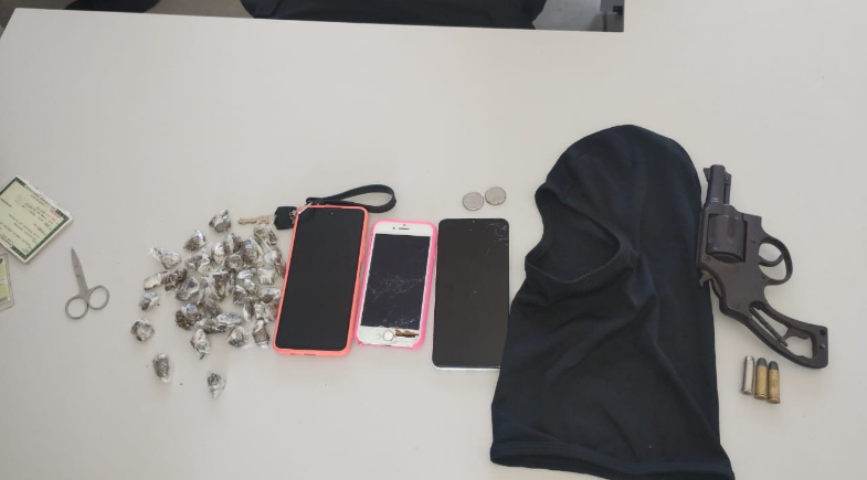 A Polícia Militar do Piauí prendeu dois suspeitos e apreendeu um revólver, drogas e celulares roubados. O rastreamento indicou o endereço dos suspeitos - uma casa com dois menores. Durante buscas no local, foram encontrados:
