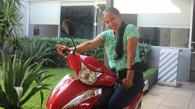 Quarta ganhadora se emociona ao receber motocicleta 0 km./Ana Ilza
